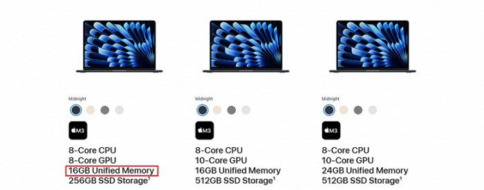 Apple объявила, что отныне актуальные модели Air наконец-то избавляются от версий с 8 ГБ оперативной памяти, так что все базовые версии переходят на 16 ГБ. При этом, что важно, базовые версии сохраняют свои цены. То есть можно говорить об удешевлении модификаций с 16 ГБ.