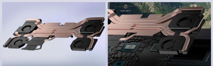 За охлаждение всего этого отвечает то, что компания называет Cryo-Chamber. Это очень крупная система охлаждения с четырьмя вентиляторами, испарительными камерами и массой тепловых трубок. В нижней части корпуса есть большая щель для притока воздуха, и тут же размещена стеклянная пластина, сквозь которую можно видеть работу СО.