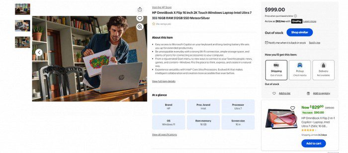 На сайте сети прописался ноутбук HP OmniBook X Flip 16 с ценой всего 1000 долларов. Это далеко не самый дешёвый ноутбук, но и линейка Core Ultra 300 в целом не рассчитана на самые доступные модели. К тому же вчера мы видели модели MSI с ценами 2100-2500 долларов.