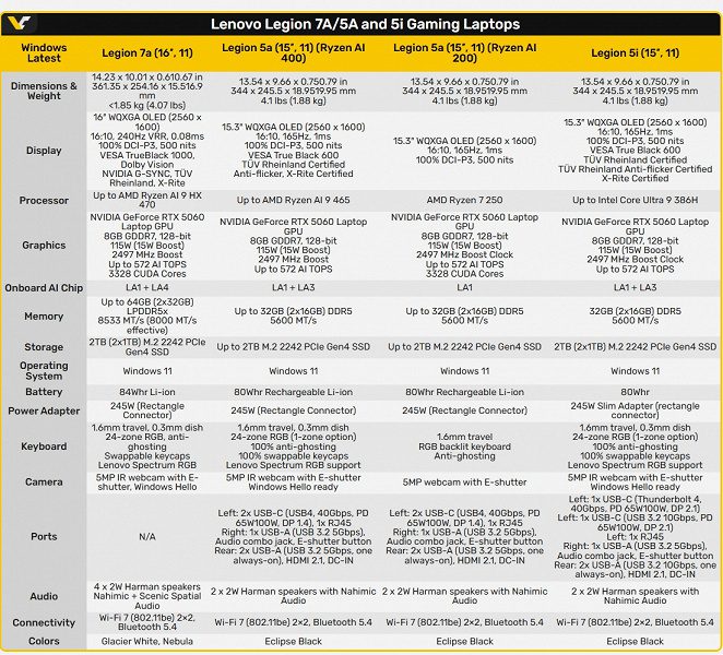 К примеру, линейка Legion 7a будет основана на новых Ryzen AI 400, их же получит линейка Legion 5a, тогда как модели Legion 5i получат новые же Core Ultra 300.