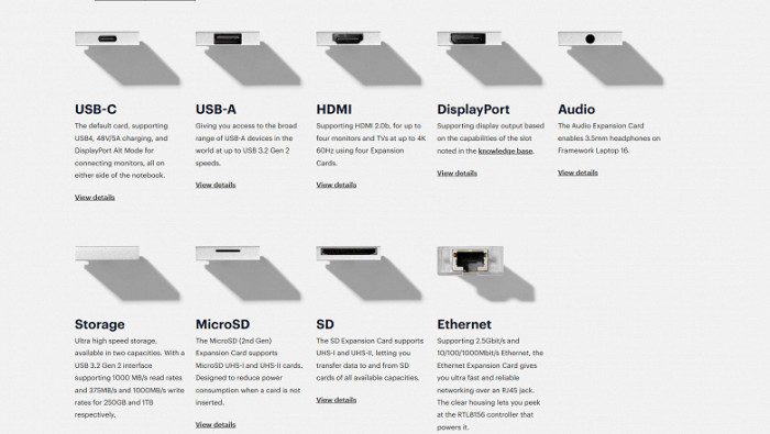 Одной из уникальных особенностей ноутбука являются порты. Они тут не просто модульные: покупатель может выбрать, какой набор из шести разъёмов получить. На выбор есть USB-C, USB-A, HDMI, DisplayPort, RJ45, а также аудиоразъём и слоты для microSD и SD. Аккумулятор ёмкостью 85 Втч должен обеспечивать очень неплохую автономность.