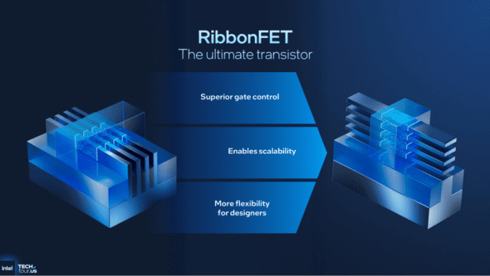 Одной из ключевых особенностей техпроцесса Intel 18A является использование транзисторов с круговым расположением затворов (GAA), которые Intel называет RibbonFET, и сети подачи питания с тыльной стороны, которую Intel называет PowerVia. Оба нововведения призваны обеспечить будущее масштабирование и повышение энергоэффективности.