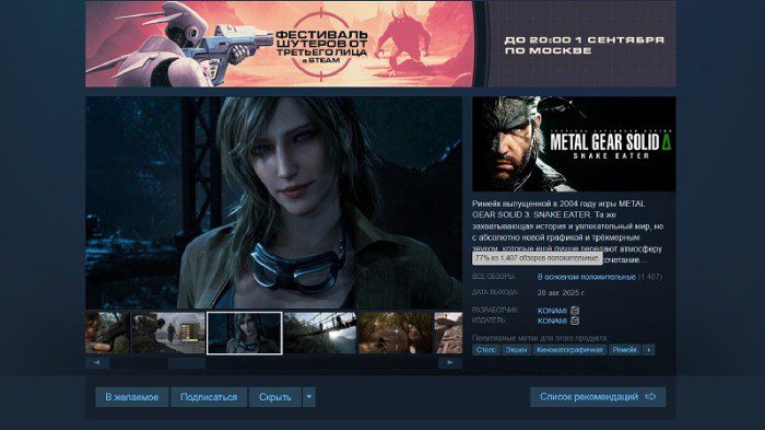 Жалуются игроки на оптимизацию, нехватку поддержки ультрашироких мониторов и консервативность проекта. «Если ремейк Silent Hill 2 предлагал новый взгляд и свежие ощущения, то с ремейком MGS3 Konami откровенно схалтурили», — сетует Valited.
