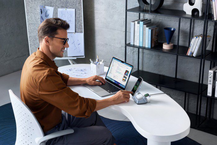 Ну а для тех, кто хочет получить максимум и зарядить все гаджеты разом, создана настольная зарядная станция 3-в-1 UGREEN MagFlow. Это уже не просто аксессуар, а настоящее рабочее решение для дома или офиса — причём ориентированное в первую очередь на пользователей устройств Apple: одновременно можно заряжать iPhone (Qi2 25 Вт), наушники AirPods (5 Вт) и смарт-часы Apple Watch (5 Вт), плюс подключить ещё одно устройство через USB Type-C (5–10 Вт).