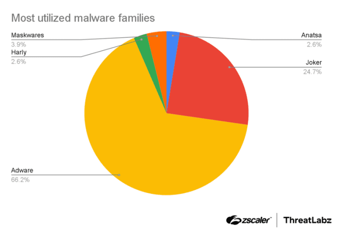 Исследователь Zscaler Химаншу Шарма (Himanshu Sharma) отметил, что команда ThreatLabz зафиксировала резкий рост числа приложений с рекламным ПО в Google Play на фоне активности таких угроз, как Joker, Harly и банковские трояны, в то время как количество вредоносов вроде Facestealer и Coper, напротив, снизилось.