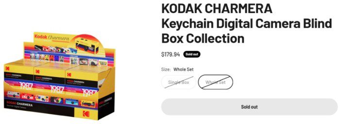 Бизнес Kodak переживает не лучшие времена, но новые миниатюрные цифровые камеры-брелки Charmera в ретро-стиле могут существенно поправить положение. Первые партии Charmera уже распроданы, теперь камеры доступны только для предзаказа на сайтах большинства продавцов, включая сайт самой Kodak. Популярности камер способствовала продажа «слепых коробок» — дизайн камеры невозможно было узнать до распаковки, если не приобрести все варианты сразу в составе коллекционного издания.