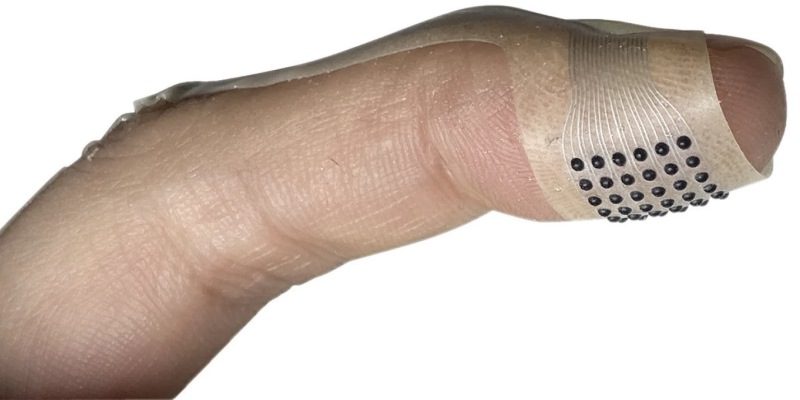 Инженеры Северо-Западного университета США разработали гибкое устройство, которое можно носить на кончике пальца, как пластырь. Оно позволяет ощущать текстуры и рельефные поверхности при взаимодействии с сенсорными экранами. Это изобретение может стать важным шагом на пути к изменению того, как люди взаимодействуют с персональными устройствами.