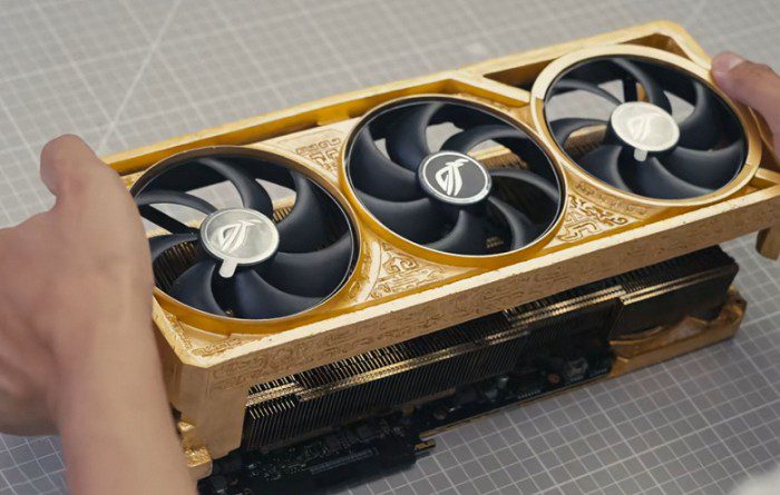 В RTX 5090 ROG Astral Real Gold Edition применяется около 5 кг золота. Работа над отливкой заняла несколько месяцев (было предпринято более десяти неудачных попыток). Каждая деталь — кожух, теплораспределительная пластина и рамка — отливалась и полировалась вручную. Вся видеокарта в сборе весит 7,56 кг, из которых две трети приходится на золото.