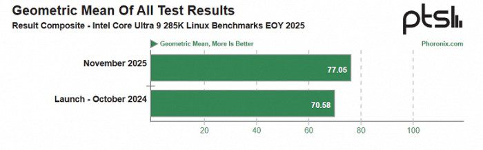 Процессоры Arrow Lake не особо удачными называла даже сама Intel. При этом компания весь год с момента анонса пыталась улучшить их показатели различными патчами. И если в Windows результаты особо не поменялись, то, как оказалось, в Linux всё действительно стало лучше. Как минимум это демонстрируют тесты Phoronix.