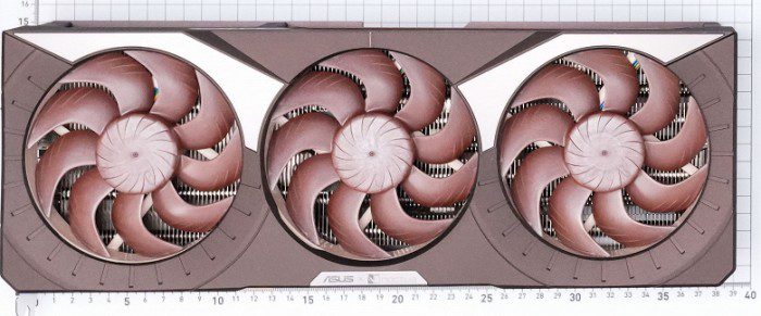 Начать стоит с того, что она даже длиннее, чем заявляет Asus: 395 мм, а не 385 мм. Да, видеокарты последних двух поколений стали заметно крупнее, но это монстр даже по сегодняшним меркам. Карта весит 2,67 кг, так что устанавливать её классически без упора точно не стоит. Сама печатная плата довольно крупная, но впечатляет скорее своей подсистемой питания.