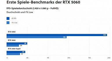 Более того, сравнивать RTX 5060 можно было лишь с двумя видеокартами: RTX 3060 и RTX 2060 Super. То есть наиболее интересного сравнения с RTX 4060 нет, не говоря уже о картах AMD.