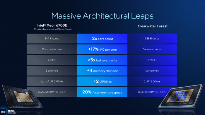 Компания Intel полноценно представила серверные процессоры Xeon 6+ линейки Clearwater Forest. Это те самые CPU, у которых даже больше ядер, чем у конкурирующих процессоров AMD Epyc.