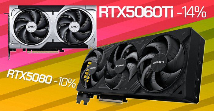 Gigabyte RTX 5080 WindForce теперь предлагается за 900 долларов, то на 100 долларов ниже рекомендованной розничной цены. PNY GeForce RTX 5070 Ti стоит сейчас 730 долларов при РРЦ 750 долларов, а GeForce RTX 5070 подешевела до 480 долларов при РРЦ 550 долларов. GeForce RTX 5060 Ti можно купить за 370 долларов (РРЦ — 430 долларов). Если не считать GeForce RTX 5070 Ti, разница с рекомендованными розничными ценами сейчас достигает 10-14%, и это в какой-то степени уникальная ситуация.