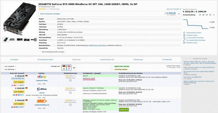 В Европе цены на GeForce RTX 50 тоже ниже рекомендованных. Например, все та же Gigabyte GeForce RTX 5080 Windforce в Германии уже примерно неделю продается за 1017-1020 евро при РРЦ 1060 евро. GeForce RTX 5070 Ti реально купить за 775-795 евро при РРЦ 880 евро. Рекомендованная розничная стоимость GeForce RTX 5070 — 590 евро, но полно ускорителей за 530-540 евро. Рекомендованная розничная стоимость GeForce RTX 5060 Ti — 400 евро, но различные ускорители от MSI, Gainward, Gigabyte и Zotac продаются за 336-356 евро.