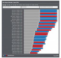 Также она довольно необычно ведёт себя в вопросе нагрузки на CPU. С одной стороны, Ryzen X3D тут являются лишь одними из когорты лидеров, куда входит довольно много моделей. С другой, если взять какой-то CPU постарше, то он может быть не просто медленнее, а вдвое медленнее.