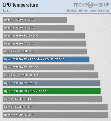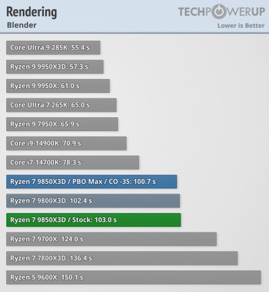 В среднем по всему набору тестового ПО авторов TechPowerUp новый процессор лишь на пару процентов быстрее Ryzen 7 9800X3D, то есть примерно так же, как и в играх. Это ожидаемо, так как разница лишь в дополнительных 400 МГц частоты. Среди процессоров Intel аналогом будет Core i7-14700K.