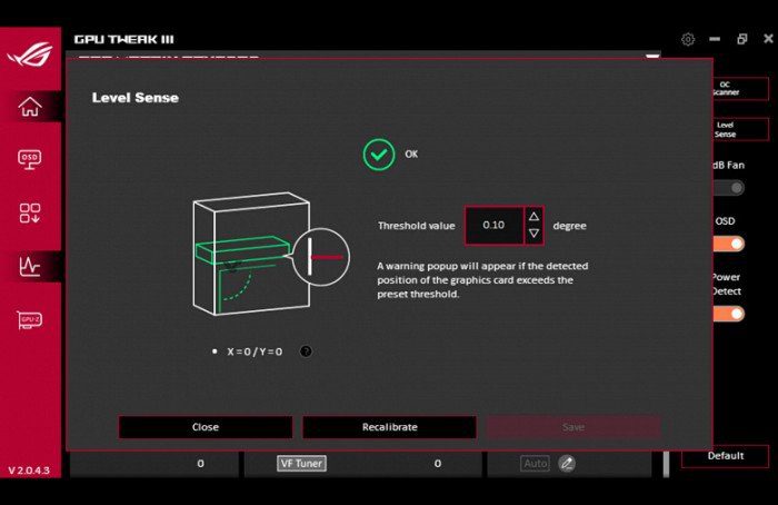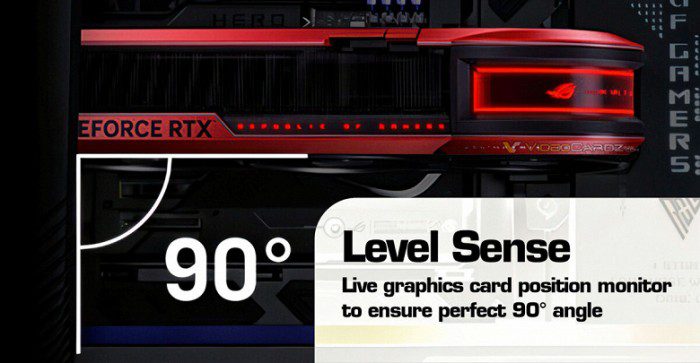 Современные видеокарты стали настолько большим и тяжёлыми, что нередко приходится думать о какой-то подпорке, чтобы карта не провисала. Компания Asus решила, что нужна не только подпорка, но и инструмент для отслеживания этого самого провисания.