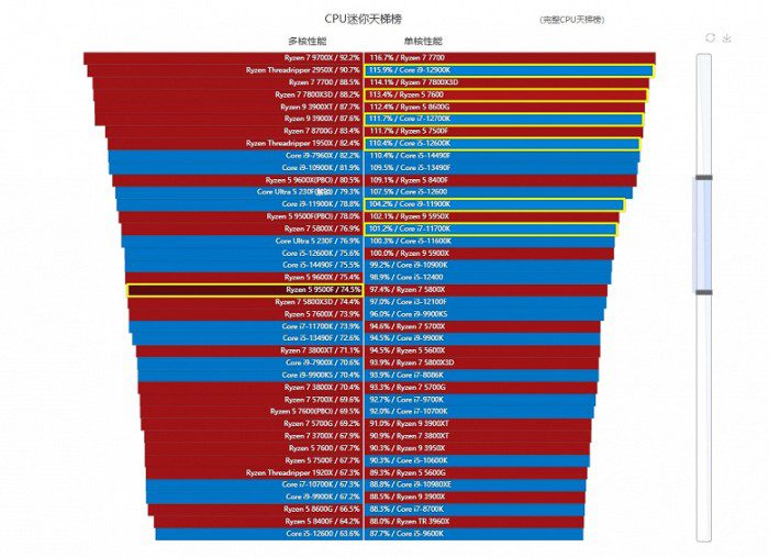 В большинстве приложений разница между CPU либо просто невелика, либо вообще не стоящая никакого внимания. В среднем старшая модель быстрее примерно на 1%, чем смело можно пренебречь. Примерно на этом же уровне, если говорить о наборе тестов источника, находятся Ryzen 5 7600X, Core i5-12600K и Core Ultra 5 230F.