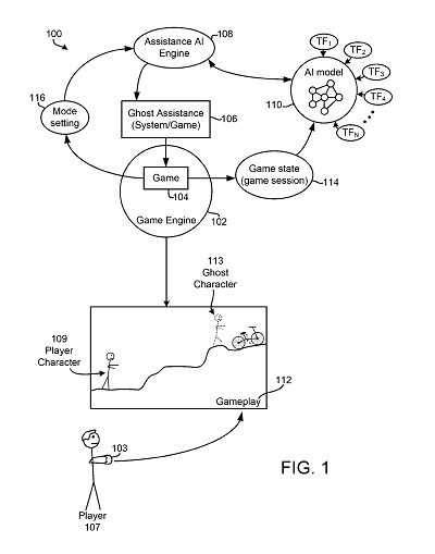 Патент описывает ИИ-помощника — вызываемую игроком призрачную версию своего персонажа, которая может показать прохождение конкретной секции уровня или даже самостоятельно её завершить.