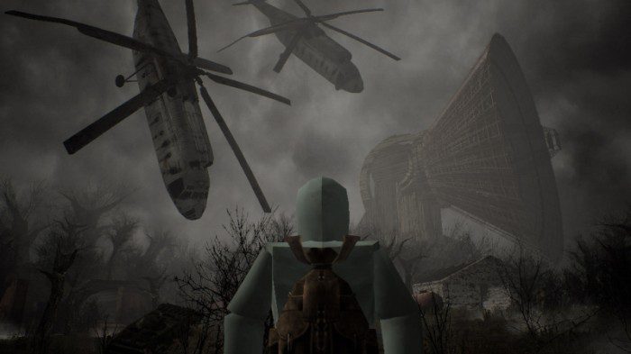 - во-первых, в финальной игре по недосмотру осталась модель вертолёта со времён, когда Misery была некоммерческим учебным проектом ведущего разработчика и развивалась за счёт покупки наборов ассетов. К настоящему моменту модель удалили;